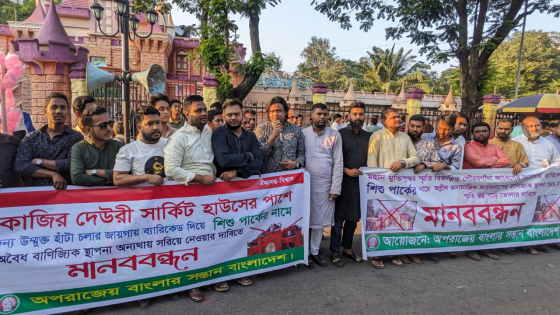 চট্টগ্রাম নগরের সার্কিট হাউসের পাশ থেকে বাণিজ্যিক শিশু পার্ক উচ্ছেদ করে জায়গাটি সর্বস্তরের সাধারণ মানুষের জন্য উন্মুক্ত করার দাবিতে মানববন্ধন করা হয়েছে। শুক্রবার (২০ অক্টোবর) বিকেল ৩টার দিকে শিশু পার্কের সামনে ‘অপরাজেয় বাংলার সন্তান বাংলাদেশ’ ব্যানারে এ মানববন্ধন করা হয়।