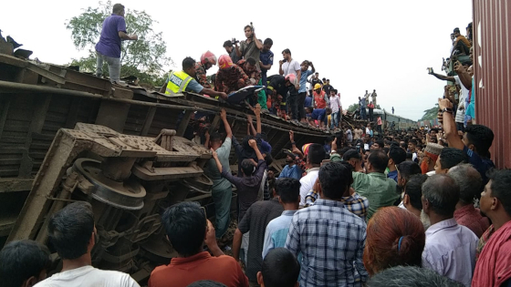 কিশোরগঞ্জের ভৈরব রেলওয়ে জংশন স্টেশন এলাকায় যাত্রীবাহী ট্রেনকে মালবাহী ট্রেনের ধাক্কায় অন্তত ২৫ জনের মৃত্যু হয়েছে। ইতোমধ্যে কিশোরগঞ্জ-৬ ভৈরব কুলিয়ারচর আসনের সংসদ সদস্য আলহাজ নাজমুল হাসান পাপন ঘটনাস্থল পরিদর্শন করেছেন।