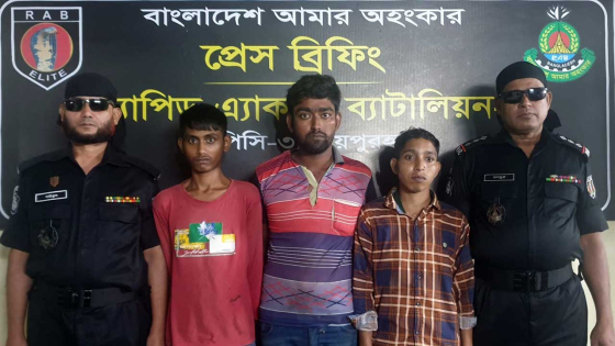 গ্রেপ্তারকৃতরা হলেন উপজেলার থুপশহর গ্রামের আজাহার আলীর ছেলে সুমন হোসেন ও একই এলাকার ফেরদৌস হোসেনের ছেলে শয়ন হোসেন এবং মাহমুদপুর গ্রামের রাশেদুল হকের ছেলে আশিক আহমেদ।