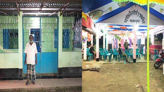 খোঁজ নিয়ে জানা গেছে, আজানের সময় থেকে নামাজের জামায়াত শেষ না হওয়া পর্যন্ত মন্দিরে ঢাক ও ঢোলসহ যাবতীয় শব্দ বন্ধ থাকে। নামাজের জামায়াত শেষ হলে মন্দিরের কার্যক্রম স্বাভাবিক হয়। এখানে কোনো বিশৃঙ্খলাও হয় না। শালীনতা বজায় রেখে একই উঠানে দীর্ঘদিন ধরে বিভিন্ন ধর্মীয় উৎসব পালন করে আসছেন উভয় ধর্মের লোকরা।