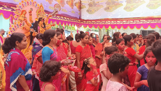 জলাশয়ে বিসর্জন দেওয়ার হয় প্রতিমাগুলো। বিসর্জনের আগে শোভাযাত্রা বের হয়। নাচে- গানে, হাসি মুখে দেবীকে বিদায় জানানো হয়। ভক্তদের কষ্ট দূর করতে এ বছর দেবী দুর্গা এসেছেন ঘোড়ায় চড়ে আর মঙ্গলবার দশমীর দিন বিদায় নেবেন এই একই বাহনে।