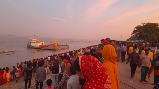 সন্ধ্যার আগে থেকেই যমুনা নদীর পাড়ে সিরাজগঞ্জ শহর রক্ষা বাঁধে মানুষ আসতে শুরু করে। প্রতিমা বিসর্জন দেখতে দলবেঁধে স্বজন, বন্ধু-বান্ধবের সঙ্গে নিয়ে দর্শনার্থীর আসতে থাকে। সন্ধ্যা গড়াতেই কানায় কানায় পূর্ণ হয় উঠে যমুনার পাড়।