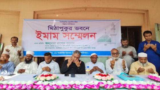 আয়োজিত ইমাম সম্মেলন অনুষ্ঠানে সভাপতিত্ব করেন উপজেলা আওয়ামী লীগের আহ্বায়ক আফসার মিয়া। অনুষ্ঠানে মিঠাপুকুর মডেল মসজিদের ইমাম মুফতি আখেরুজ্জামান আজাদী, অধ্যক্ষ মেসবাহুর রহমান, চেংমারী ইউনিয়ন পরিষদ চেয়ারম্যান রেজাউল কবীর টুটুল, দুর্গাপুর চেয়ারম্যান সাইদুর রহমান তালুকদার, শঠিবাড়ি কাচারি জামে মসজিদের ইমাম মুফতি বেলাল আহমদ, মাওলানা মাছুম বিল্লাহ প্রমুখ। আওয়ামী লীগ নেতা রাশেক রহমান, সম্মেলনে উপস্থিত ইমামদের সঙ্গে দেশের সার্বিক পরিস্থিতি ও দ্বাদশ জাতীয় সংসদ নির্বাচন নিয়ে মতবিনিময় করেন। এ সময় তিনি প্রধানমন্ত্রী শেখ হাসিনার নেতৃত্বে দেশের সাধারণ মানুষের কল্যাণে চলমান উন্নয়নের ধারাকে গতিশীল রাখার লক্ষে ইমাম, মুয়াজ্জিন ও আলেম সমাজের সহযোগিতা কামনা করেন। পাশাপাশি যে কোনো অপশক্তির ধ্বংসাত্মক ও নাশকতাসহ দেশ বিরোধী ষড়যন্ত্রের বিরুদ্ধে সজাগ থেকে প্রতিরোধ গড়ে তোলার আহব্বান জানান রাশেক রহমান।
