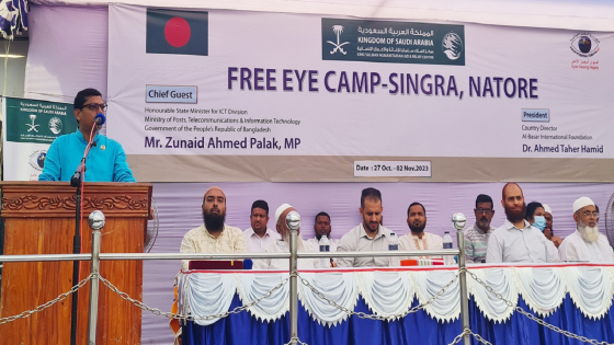 তিনি বলেন, সিংড়ার মানুষের চক্ষু চিকিৎসার জন্য বাইরে গিয়ে যে অর্থ ব্যয় হতো এখন তা হয় না। আমরা আল-বাসার ইন্টারন্যাশনাল ফাউন্ডশনের সৌজন্যে সিংড়ার মানুষের কল্যাণে চিকিৎসাসেবা পৌঁছে দিয়েছি। এখন তাদের আর হাজার হাজার টাকা খরচ করে রাজশাহী, ঢাকা যেতে হয় না। সিংড়ায় বসে উন্নত চিকিৎসাসেবা প্রদান করা হচ্ছে। চলনবিলের আশপাশের ৫ হাজার মানুষকে আজকে আমরা বিনামূল্যে চক্ষুসেবা প্রদান করেছি।