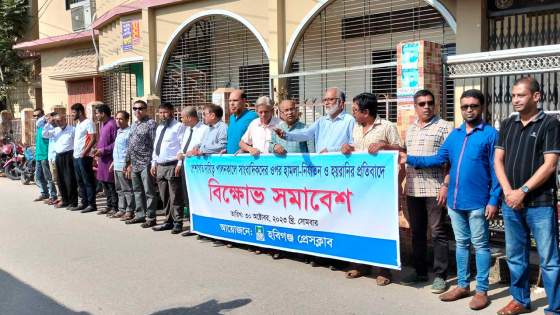 সোমবার (৩০ অক্টোবর) দুপুরে হবিগঞ্জ প্রেস ক্লাবের সামনে এ মানববন্ধন ও সমাবেশ অনুষ্ঠিত হয়।