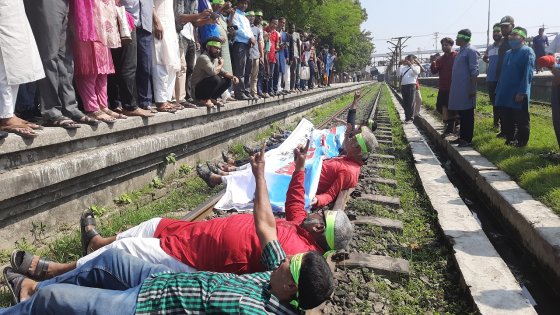 ‘রেলপথে মাথা দিব, দেহ দেব, প্রাণটাও দেব তবুও ময়মনসিংহের একমাত্র ট্রেন বিজয় এক্সপ্রেসের স্টার্টিং পয়েন্টে পরিবর্তন করতে দেব না।’ এমন স্লোগানে আন্দোলনে নেমেছে ক্ষুব্ধ নাগরিকরা। ময়মনসিংহ থেকে চট্টগ্রামগামী বিজয় এক্সপ্রেস ট্রেনের স্টার্টিং পয়েন্ট পরিবর্তন করে জামালপুর নেওয়া হচ্ছে এই খবরে ক্ষুব্ধ নাগরিকরা এমন কর্মসূচি পালন করে।