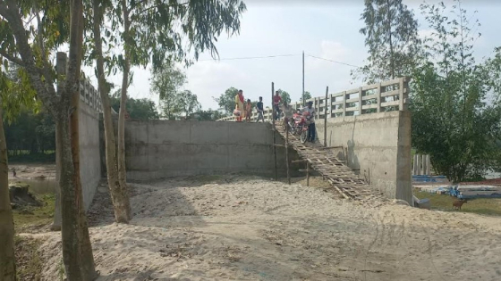 সেতু আছে কিন্তু সংযোগ সড়ক নেই। তাই ৭ কোটি টাকা ব্যয়ে নির্মিত সেতুতে উঠতে হয় বাঁশের সাঁকো বেয়ে। সেতু নির্মাণের এক বছর পেরিয়ে গেলেও ঠিকাদারি প্রতিষ্ঠান সংযোগ সড়ক নির্মাণ করেনি। এলাকাবাসী বাধ্য হয়ে নিজ উদ্যোগে বাঁশ দিয়ে তৈরি করেছেন সাঁকো।