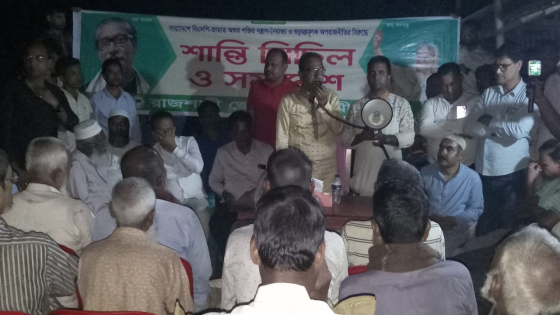 বিএনপি-জামায়াতের সন্ত্রাস, নৈরাজ্য, হরতাল, অবরোধের বিরুদ্ধে গণসচেতনতা সৃষ্টির লক্ষ্যে রাজশাহী জেলা আওয়ামী লীগের উদ্যোগে বিক্ষোভ মিছিল ও শান্তি সমাবেশ অনুষ্ঠিত হয়েছে। সোমবার (৬ নভেম্বর) সন্ধ্যা ৬টার দিকে জেলার পুঠিয়া উপজেলার তারাপুর বাজারে এই কর্মসূচি পালন করা হয়।