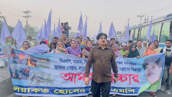 সোমবার (৬ নভেম্বর) বিকেলে সোনারগাঁয়ের ঢাকা-চট্টগ্রাম মহাসড়কে বিএনপি-জামায়াতের হরতালের প্রতিবাদে শান্তি মিছিল শেষে জাতীয় পার্টির অতিরিক্ত মহাসচিব ও সোনারগাঁয়েরে এমপি লিয়াকত হোসেন খোকা এসব কথা বলেন।