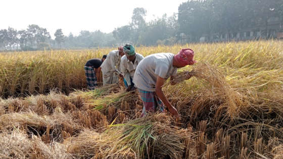 মাঠে মাঠে সোনালি রঙের রোপা আমন। ধানের সঙ্গে ধানের ঘর্ষণে খসখসে শব্দ শোনা যাচ্ছে। যেদিকে চোখ যায় মাঠে রোপা আমন ধান কাটা, মাথায় ধানের বোঝা বয়ে নিয়ে যাওয়া, তদারকির জন্য জমি ও সেচ মালিক এবং শ্রমিকদের চোখে পড়ে। সিরাজগঞ্জের কামারখন্দের মাঠজুড়ে রোপা আমন ধান কাটার ধুম পড়েছে। গত সপ্তাহ থেকে অল্প অল্প করে ধান কাটা শুরু হলেও এখন পুরোপুরি ধান কাটতে ব্যস্ত হয়ে পড়েছেন কৃষকরা।