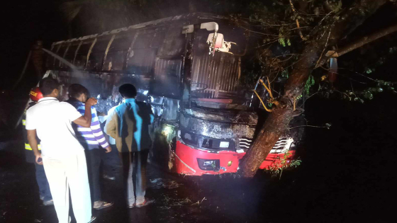 বরগুনার তালতলী থেকে ছেড়ে আসা ঢাকাগামী সাকুরা পরিবহন ঢাকা মেট্রো-ব-১১-৮৫৭১-এ অগ্নিসংযোগ করে দুর্বৃত্তরা।