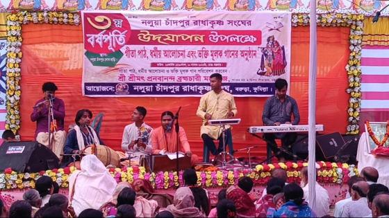কুমিল্লার বরুড়া উপজেলার নলুয়া চাঁদপুরে রাধাকৃষ্ণ সংঘের তৃতীয় প্রতিষ্ঠাবার্ষিকী উদযাপিত হয়েছে। শুক্রবার (১০ নভেম্বর) ভোর রাত থেকেই ভক্তদের আনাগোনা শুরু হলেও অনুষ্ঠানের সূচনালগ্ন হয় বৃহস্পতিবার সন্ধ্যায় প্রদীপ প্রজ্বলন ও গঙ্গা আহ্বানের মাধ্যমে।