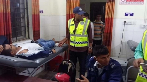 পথিমধ্যে পৌরসভার এলিন ট্রেড সেন্টারের সামনে পৌঁছালে বিপরীত দিক থেকে আসা একটি নছিমনকে সাইড দিয়ে গিয়ে রাস্তায় উল্টে যায়। এ সময় টহলে থাকা দুটি মোটরসাইকেল উল্টে যাওয়া নছিমনের সঙ্গে ধাক্কা লাগে। এতে মোটরসাইকেলে থাকা তিন পুলিশ সদস্যসহ নছিমনচালক গুরুতর আহত হন। পরে তাদের উদ্ধার করে উপজেলা স্বাস্থ্য কমপ্লেক্স এ ভর্তি করানো হয়।