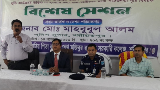 মঙ্গলবার (১৪ নভেম্বর) শরীয়তপুরে জাতির পিতা বঙ্গবন্ধু শেখ মুজিবুর রহমান সরকারি কলেজে অবৈধ অনলাইন বেটিং, গ্যাম্বলিং, ফরেন এক্সচেঞ্জ, ক্রিপ্টো কারেন্সি ট্রেডিং ও হুন্ডি কার্যক্রমের জন্য বাংলাদেশ ব্যাংক ও শিক্ষা মন্ত্রণালয়ের নির্দেশনার আলোকে একটি বিশেষ সচেতনতামূলক সেশন অনুষ্ঠিত হয়। সেশনে প্রধান অতিথির বক্তব্যকালে তিনি এসব কথা বলেন।