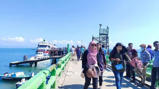 বিআইডব্লিউটিএ জাহাজঘাটের ইজারাদারের উশুল আদায়কারী সূত্র জানায়, টেকনাফের দমদমিয়া জেটিঘাট থেকে বুধবার সকাল সাড়ে ৯টার দিকে কেয়ারি সিন্দাবাদে ১৩২ জন, আটল্যান্টিকে ৮৯ ও এমভি বার আউলিয়া করে ২৯৮ জন পর্যটক সেন্টমার্টিন দ্বীপে বেড়াতে গেছেন। পরে জাহাজে করে বিকেল ৩টায় তিন শতাধিক পর্যটক ফেরত আসলেও অন্যরা দ্বীপে রয়ে গেছেন। আগের দিন মঙ্গলবার বেড়াতে গিয়ে রাতযাপনের জন্য ছিলেন দেড় শতাধিক পর্যটক। ফলে দ্বীপে এখন চার শতাধিক পর্যটক অবস্থান করছেন।