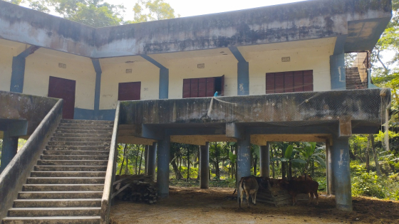সাইক্লোন শেল্টারের নিচে গরু, ছাগল এবং রান্না করার লাকড়ি রেখেছেন তিনি। উপরে উঠলে দেখা যায়, সেখানে মুরগি পালন করছেন তিনি। তবে, এ নিয়ে প্রতিবেদন প্রকাশ না করার অনুরোধ করেন সাইক্লোন শেল্টার দখল করে থাকা ছগির বিশ্বাস।