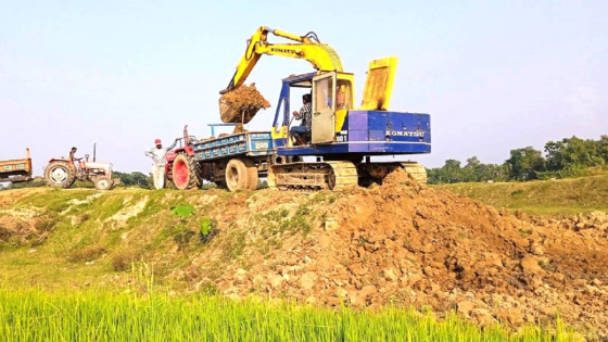 মৌলভীবাজার বড়লেখায় পানি উন্নয়ন বোর্ড এবং পরিবেশ, বন ও জলবায়ু পরিবর্তন মন্ত্রণালয়ের ইবিএ প্রকল্পের আওতাধীন মাধবছড়া খাল পুনঃখনন করে উভয় তীরে নির্মিত বাঁধের মাটি কেটে নিয়ে যাচ্ছে প্রভাবশালীরা। উপজেলার সুজানগর ইউনিয়নের সালদিগা গ্রামের ক্ষিরোধ দাসের ছেলে সঞ্জিত দাস ভাড়া করা এসকেভেটর দিয়ে ছড়ার তীরের বাঁধ কেটে ট্রাক্টরে মাটি নিয়ে বসতবাড়ির পুকুর ভরাট করতে দেখা গেছে।