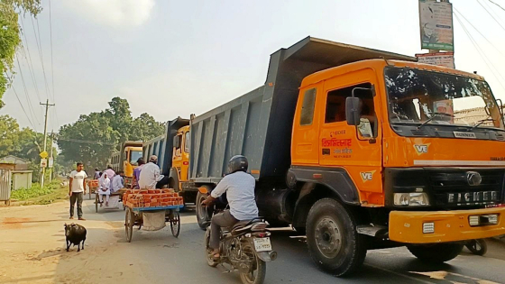 দিনাজপুরের খানসামা উপজেলার খানসামা-দারোয়ানী আঞ্চলিক মহাসড়কে ১৭ বছর ধরে পাবলিক বাসের চাকা না ঘুরলেও, ঘোরে শুধু ১০ চাকার শত শত ডাম্পট্রাক। এসব ট্রাক পার্শ্ববর্তী বীরগঞ্জ উপজেলার আত্রাই নদীর বিভিন্ন পয়েন্ট থেকে বালু উত্তোলন করে চলছে অবাধে।