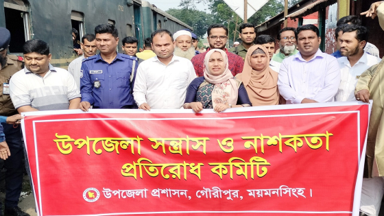 দেশের চলমান পরিস্থিতিতে ময়মনসিংহের গৌরীপুর রেলওয়ে জংশনে সন্ত্রাস ও নাশকতাবিরোধী প্রচারাভিযান ও সভা অনুষ্ঠিত হয়েছে।