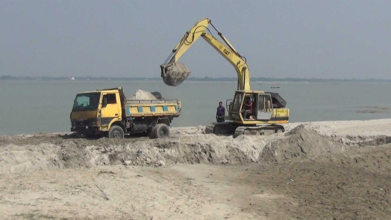 রাজবাড়ীর গোয়ালন্দে পদ্মা নদী থেকে অবৈধভাবে বালু উত্তোলন চলছে। এতে হুমকির মুখে পড়েছে নদী তীরবর্তী বাড়িঘর ও ফসলি জমিসহ বিভিন্ন স্থাপনা। স্থানীয়দের অভিযোগ, প্রভাবশালী মহল ক্ষমতার অপব্যবহার করে এসব বালু উত্তোলন করে বিক্রি করছে।