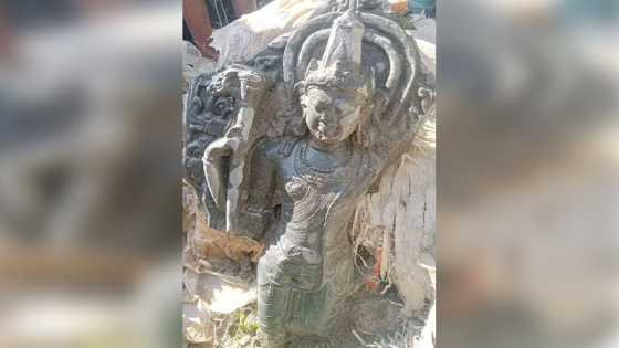 দিনাজপুরের বিরলে পুকুরে মাটি কাটতে গিয়ে একটি কষ্টিপাথরের মূর্তি উদ্ধার করা হয়েছে।