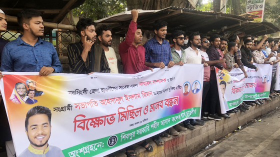 নরসিংদী জেলা ছাত্রলীগের সভাপতি আহসানুল ইসলাম রিমনের মুক্তির দাবিতে বিক্ষোভ মিছিল, সমাবেশ ও মানববন্ধন করেছে ছাত্রলীগ। শনিবার (২ ডিসেম্বর) দুপুরে নরসিংদী সদর উপজেলা মোড়ে অনুষ্ঠিত বিক্ষোভ মিছিল ও সমাবেশে জেলা, উপজেলা, নরসিংদী সরকারি কলেজ শাখা, মাধবদী শহর শাখা, শিবপুর উপজেলাসহ জেলার বিভিন্ন কলেজ শাখা ছাত্রলীগের নেতাকর্মীরা অংশগ্রহণ করেন।