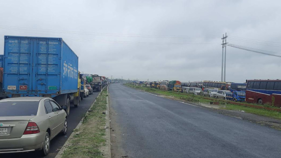 বঙ্গবন্ধু সেতুর পূর্বপাড়ে সৃষ্ট ভয়াবহ যানজটের প্রভাব এড়াতে সেতুর দুটি লেনেই ছাড়া হচ্ছে উত্তরবঙ্গগামী যানবাহন। ঢাকামুখী লেনের যান চলাচল বন্ধ রাখায় পশ্চিমেও সৃষ্টি হয়েছে যানজট। আবার অতিরিক্ত গাড়ির চাপে উত্তরবঙ্গগামী লেনেও রয়েছে ধীরগতি।