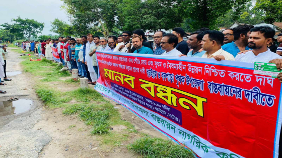 নাটোরের বড়াইগ্রাম-বনপাড়া পৃথক উপজেলা গঠনের দাবিতে বনপাড়া-হাটিকুমরুল মহাসড়কের পাশে রাজ্জাক মোড়ে মানববন্ধন অনুষ্ঠিত হয়েছে।