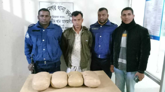 থানা সূত্রে জানা গেছে, গোপন সংবাদ পেয়ে মুজিবনগর মেহেরপুর প্রধান সড়কে মাদকবিরোধী এক অভিযান চালায় মুজিবনগর থানা পুলিশ। এ সময় হীরা ইটভাটার সামনে একটি ইজিবাইকের গতিরোধ করে তল্লাশি চালালে মরিচের বস্তার ভিতরে অভিনব কায়দায় লুকানো ৪টি পুটলা থেকে মোট ৫ কেজি গাঁজা উদ্ধার করা হয়।