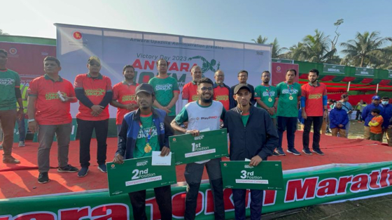 মহান বিজয় দিবস উপলক্ষে চট্টগ্রামের আনোয়ারায় অনুষ্ঠিত হলো ১০ কিলোমিটার হাফ ম্যারাথন দৌড় প্রতিযোগিতা। উপজেলা প্রশাসনের আয়োজনে শুক্রবার (১৫ ডিসেম্বর) ভোর সাড়ে ৬টায় আনোয়ারা সরকারি মডেল উচ্চ বিদ্যালয় মাঠ থেকে এই প্রতিযোগিতা শুরু হয়ে বঙ্গবন্ধু টানেল সড়কের ১০ কিলোমিটার দূরত্ব অতিক্রম করে পুনরায় উপজেলা চত্বরে এসে শেষ হয়। এতে সহযোগিতা করেন করে চট্টলা রানার্স।