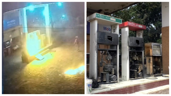 পাম্পে থাকা সিসিটিভি ফুটেজে দেখা যায়, অন্তত ১২ জন যুবক পাম্প থেকে অকটেন ও পেট্রোল দেওয়ার ৫টি যন্ত্র ভাঙচুর শুরু করে। ভাঙচুরের পর দুর্বৃত্তরা ওই ৫ যন্ত্র লক্ষ্য করে পেট্রোলবোমা নিক্ষেপ করে। এতে আগুন ধরে যায়। ঘটনার পরপরই সেখানে টহল পুলিশের উপস্থিতি টের পেয়ে দুর্বৃত্তরা ঘটনাস্থল থেকে পালিয়ে যায়। পরে অগ্নিনির্বাপন যন্ত্রের সাহায্যে আগুন নিভিয়ে ফেলা হয়।