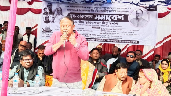 তিনি আরও বলেন, আমি ’৭১ সালে যখন যুদ্ধে গিয়েছিলাম, তখন আমার বয়স ছিল ২১ বছর। তখন যারা যুদ্ধে গিয়ে প্রায় সকলের বয়স ১৮ হতে ২৬ বছর ছিল। এ কথা বলা এই জন্য, এই পৃথিবীটা বদলে দিতে পারে যুবকরা। বয়স তাদের এমন, বদলে দেওয়ার ক্ষমতাটা তাদের। অনেক আগে একটা ইংরেজি ছবি দেখেছিলাম। ছবিটার নাম ছিল হর্নেস্ট নেস্ট। সেই ছবিতে এক জায়গায় বলা হয়েছিল, ৫টা যুবকের সামনে যদি একটা বল দেওয়া হয় তাহলে তারা শ্রেষ্ঠ খেলা উপহার দেবে। আর যদি একটা গ্রেনেড দেওয়া হয় তাহলে তারা পৃথিবী উল্টে দেবে। এই কথাগুলো বলার উদ্দেশ্য, আগামী ৭ জানুয়ারি নির্বাচনে বিএনপি অংশগ্রহণ করছে না। তারা এই ভোট নষ্ট করার জন্য বিভিন্ন জায়গায় বোমাবাজি করছে। তিন দিন আগে তারা ট্রেনে আগুন দিয়ে মা ও তিন বছরের বাচ্চাকে একসঙ্গে পুড়িয়ে মেরেছে। ভোট প্রদান হতে বিরত থাকার জন্য তারা কয়দিন ধরে লিফলেট বিতরণ করছে। তাদের এই দূরভিসন্ধি নস্যাৎ করতে যুবকদের এগিয়ে আসতে হবে।