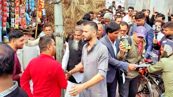 বিকেল সাড়ে ৩টার দিকে মাশরাফী উপজেলার ইতনা ইউনিয়নের পাংখারচর, চরপরানপুর, চরসুচাইল, উত্তর পাংখারচর ও লোহাগড়া ইউনিয়নের ছাগলছিড়া, জয়পুর ইউনিয়নের আমডাঙ্গাসহ তার নির্বাচনী এলাকার বিভিন্ন স্থানে নির্বাচনী প্রচার ও পথসভায় বক্তব্য রাখেন।