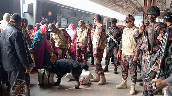 স্টেশনে ডগ স্কোয়াড তল্লাশি চালানোর বিষয়ে চাঁপাইনবাবগঞ্জের ৫৩-বিজিবির অধিনায়ক লে. কর্নেল মো. নাহিদ হোসেন জানান, নির্বাচনকে ঘিরে যাতে কোনো ধরনের অপ্রীতিকর ঘটনা না ঘটে, সেই লক্ষ্যে রেলস্টেশনসহ গুরুত্বপূর্ণ স্থানে সবসময় নজরদারি করছে বিজিবি সদস্যরা।