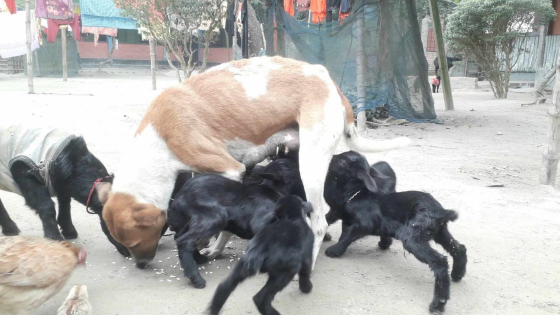 বাড়ির উঠানে দাঁড়িয়ে আছে একটি কুকুর। লেজ নাড়াতে নাড়াতে তার দিকে ছুটে এলো কয়েকটি ছাগলছানা। এরপর ছানাগুলো কাছে গিয়ে কুকুরটির দুধপান করতে থাকে। পরম মাতৃস্নেহে তাদের দুধপান করায় ওই কুকুর।