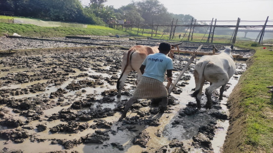 লাঙ্গল নিয়ে হাল চাষে কৃষকের কর্মব্যস্ততা দেখে বোঝার উপায় নেই এটিই এক সময়ের খরস্রোতা নদী বড়াল। কালের বিবর্তনে দখল-দূষণে অস্তিত্ব সংকটে ভুগছে পদ্মার অন্যতম শাখা নদী এই বড়াল।
