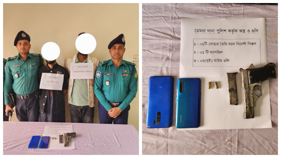 ঘটনার সত্যতা স্বীকার করে ডেমরা থানার ওসি মো. জহিরুল ইসলাম বলেন, গোপন সংবাদের ভিত্তিতে জানতে পারি ওই এলাকায় রাত ২টার দিকে কয়েকজন লোক অস্ত্রসহ অবস্থান করছে। এমন সংবাদের ভিত্তিতে অভিযান চালায় পুলিশ। পুলিশের উপস্থিতি টের পেয়ে পালিয়ে যাওয়ার সময় শফিকুল ইসলাম অভি ও রাকিব নামের ২ জনকে আটক করতে সক্ষম হয় পুলিশ। এ সময়ে তাদের কাছ থেকে নাইন এমএম মডেলের একটি সচল বিদেশি পিস্তল, ১টি ম্যাগজিন, ২ রাউন্ড তাজা গুলি ও ২টি মোবাইল ফোন উদ্ধার করা হয়।