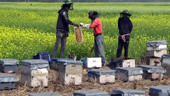 নওগাঁয় এবার সরিষা ফুল থেকে মধু সংগ্রহ করছেন কৃষকরাও। বর্তমানে মৌ বাক্সের মাধ্যমে মৌয়ালদের পাশাপাশি কৃষকরাও মধু সংগ্রহ করতে ব্যস্ত সময় পার করছেন। দেশের সরিষা মাঠ থেকে মধু সংগ্রহের লক্ষ্যমাত্রা বৃদ্ধি এবং আগ্রহী কৃষকদের প্রশিক্ষণের মাধ্যমে মধু সংগ্রহ করে আর্থিকভাবে লাভবান করতে কৃষি বিভাগের পক্ষ থেকে গ্রহণ করা বিশেষ কর্মসূচির সুফল এটি। সরিষা চাষের পাশাপাশি মধু আহরণ করে দ্বিগুণ লাভবানও হচ্ছেন জেলার অনেক কৃষক। এ ছাড়া বেকার যুবকরাও এ কাজে যুক্ত হলে আর্থিক স্বচ্ছলতা ফেরাতে পারবেন বলে জানিয়েছেন সংশ্লিষ্টরা।