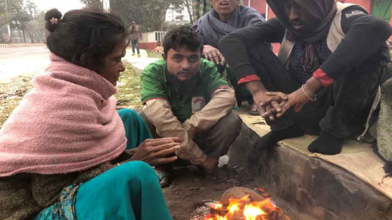 পলিথিন দিয়ে চারপাশ ঘিরে ছেঁড়া কম্বল গায়ে দিয়ে শীতের তীব্রতা থেকে বাঁচার প্রচেষ্টায় আছেন ইব্রাহিম। দিনে শহরের মোড়ে মোড়ে ঝালমুড়ি বিক্রি করে জীবিকা নির্বাহ করেন এই বৃদ্ধ। গত এক সপ্তাহে শীতের দাপট বাড়ায় উপার্জনের উৎস বন্ধ হয়ে মানবেতর জীবনযাপন করছেন তিনি।