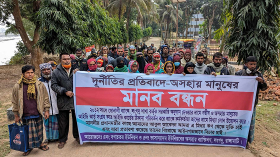 ভোক্তভোগীদের অভিযোগ, জাতীয় পরিচয়পত্র নিয়ে সরকারি সহয়তা প্রদানের নামে স্থানীয় কৃষকদের ঋণের ফাঁদে ফেলেছে একটি চক্র। ২০১২ সালের বিভিন্ন সময় সরকারি সহায়তা প্রদানের আশ্বাসে জাতীয় পরিচয়পত্র জালিয়াতি করে ঋণের ফাঁদে ফেলেছে স্থানীয়দের। ব্যাংক কর্মকর্তাদের যোগসাজশে একটি দাললচক্র এই কাজ করেছে বলে তারা অভিযোগ করছেন। জাতীয় পরিচয়পত্রে প্রথম অংশের সঙ্গে অন্যজনের দ্বিতীয় অংশ জুড়ে দিয়ে ভুয়া কাগজ তৈরি করে তাদের নামে কৃষি ঋণ উত্তোলন করা হয়েছে। কার্ডে উল্লেখিত নাম, জন্ম তারিখ, পিতা ও মাতার নামের অংশ ঠিক রেখে পেছনের ঠিকানার অংশটি পরিবর্তন করা হয়েছে। এভাবে সবার সঙ্গে প্রতারণা করে ঋণের ফাঁদে ফেলা হয়েছে। যা তারা আগে জানতেন না। ভুক্তভোগী লোকজনের মধ্যে রয়েছেন কৃষক, দিনমজুর, বিধবা ও জেলে। এই ঋণ থেকে বাঁচতে বিভিন্ন কর্মসূচি পালন করছেন ভুক্তভোগীরা। তারা মানববন্ধন, বিক্ষোভ মিছিল করেছেন। রোববার (১৪ জানুয়ারি) তারা এ কর্মসূচি পালন করেন।