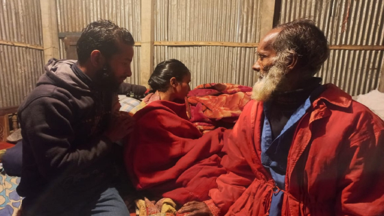 কৃষি শ্রমিক স্বামী রুবেল মিয়া কালবেলাকে জানান, ‘আমার স্ত্রীর জন্য আপনারা দোওয়া করবেন’। বছর দেড়েক আগে কল্পনার সঙ্গে পারিবারিকভাবে বিয়ে হয় তার। পাঁচ মাস আগে কল্পনার গর্ভে সন্তান আসে। শৈত্য প্রবাহের মধ্যে শীত নিবারণের জন্য গত বৃহস্পতিবার (১২ জানুয়ারি) আগুন পোহাতে গিয়ে অসাবধানতাবশত আগুন লাগে কল্পনার পরনের কাপড়ে। আগুন নেভানোর আগেই পুড়ে যায় হাঁটুর নিচ থেকে গলা পর্যন্ত।