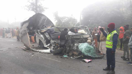 ঘন কুয়াশার মধ্যে বেপরোয়া গতির কারণে এ দুর্ঘটনা ঘটেছে বলে ধারণা করা হচ্ছে।