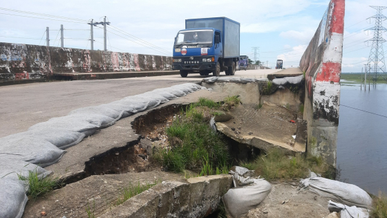 হবিগঞ্জের আজমিরীগঞ্জে সদর ইউনিয়নের কুশিয়ারার শাখা নদীর সুজনী খালের ওপর নির্মিত সেতুর উভয় পাশে সংযোগ সড়ক ভেঙে বড় ধরনের গর্তের সৃষ্টি হয়েছে। বিগত কয়েক দিনের টানা ভারি বর্ষণে এই ভাঙনের সৃষ্টি হয়। এতে করে যে কোনো সময় বড় ধরনের দুর্ঘটনার শঙ্কা ও সড়কটি বিচ্ছিন্ন হবার আশঙ্কা প্রকাশ করছেন এলাকাবাসী।