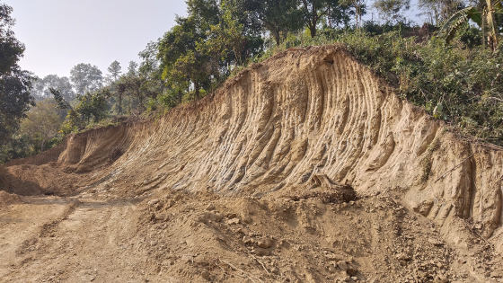 রাঙামাটির কাপ্তাই উপজেলার ৫নং ওয়াগ্গা ইউনিয়নের সাপছড়ি এলাকায় গিয়ে দেখা যায় নির্বিচারে কাটা হয়েছে পাহাড়। পাহাড়ের বুকে এখনো ড্রেজারের ক্ষত চিহ্ন বিরাজমান। খোঁজ নিয়ে জানা যায়, রাঙামাটি সড়ক ও জনপদ অধিদপ্তর সড়কের উন্নয়ন কাজ করার জন্য এভাবে ড্রেজার দিয়ে রাতের আঁধারে পাহাড় কেটে সাবাড় করছিল।