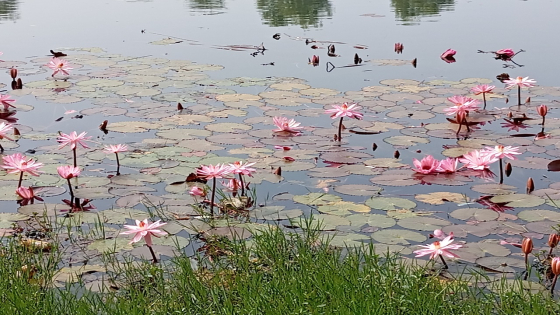 দূর থেকে দেখলে মনে হয় যেন ফুলের বিছানা পেতে রেখেছে কেউ। যতদূর চোখ যায়, সবুজের মাঝে সৌন্দর্যের শোভা ছড়াচ্ছে জাতীয় ফুল শাপলা। ভোরের সূর্যের আলোয় ফুটন্ত লাল শাপলার চোখ জুড়ানো হাসি, আশপাশের পরিবেশ আলোকিত করে দেয়। জাতীয় ফুলের রঙ সাদা হলেও লাল শাপলা মানুষকে আকর্ষিত করে বেশি।