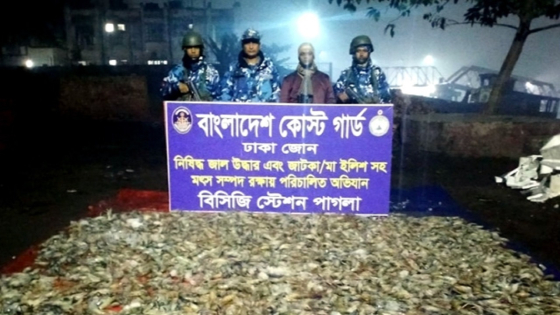 কোস্ট গার্ডের লেফটেন্যান্ট কমান্ডার সদর দপ্তরের মিডিয়া কর্মকর্তা খন্দকার মুনিফ তকি এর সত্যতা নিশ্চিত করে বলেন, সাতক্ষীরা থেকে চট্টগ্রামগামী একটি ট্রাক এবং একটি বাস তল্লাশি করে ওই বিষাক্ত জেলি পুশকরা চিংড়ি জব্দ করা হয়। পরে জব্দ জেলিযুক্ত চিংড়ি আগুনে পুড়িয়ে মাটি চাপা দিয়ে ধ্বংস করা হয়। অপরদিকে সোনারগাঁয়ের কাঁচপুর ব্রিজ সংলগ্ন এলাকায় অভিযান চালিয়ে বরিশাল থেকে ঢাকাগামী একটি ট্রাক তল্লাশি করে আনুমানিক ওই অবৈধ জাটকা জব্দ করে কোস্ট গার্ড। পরে নারায়ণগঞ্জ সদর উপজেলার সিনিয়র মৎস্য কর্মকর্তা মো. আসাদুজ্জামান আসাদের উপস্থিতিতে জব্দ জাটকা স্থানীয় মাদ্রাসা, এতিমখানা, গরিব ও দুস্থ পরিবারের মাঝে বিতরণ করা হয়।