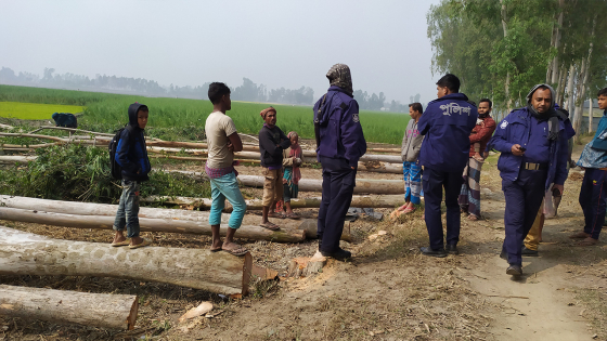 সরেজমিনে দেখা যায়, মোড়দিয়া গ্রামে সরকারি রাস্তার গাছ জমির মালিক (শংকর সরকার) নিজের হাতে রোপণ করা গাছ বলে অবাধে গাছ কাটছেন। স্থানীয়রা বাঁধা দিলেও তাদের এ বাঁধায় কোনো কর্ণপাত না করে এরই মধ্যে ১২টি গাছ কেটে ফেলে।
