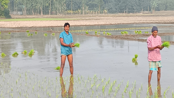 সরেজমিন উপজেলার বিভিন্ন এলাকা ঘুরে দেখা যায়, হাড় কাঁপানো শীতের মধ্যে জমির কাদা পানিতে নেমে সকাল থেকে সন্ধ্যা পর্যন্ত ধানের চারা রোপণ করছেন চাষিরা। কেউ চারা রোপণ উপযোগী জমি প্রস্তুতে ব্যস্ত। আবার কেউ বীজতলা থেকে চারা তুলছেন। এ যেন বিস্তীর্ণ মাঠজুড়ে কৃষকদের এক আনন্দঘন পরিবেশ তৈরি হয়েছে।
