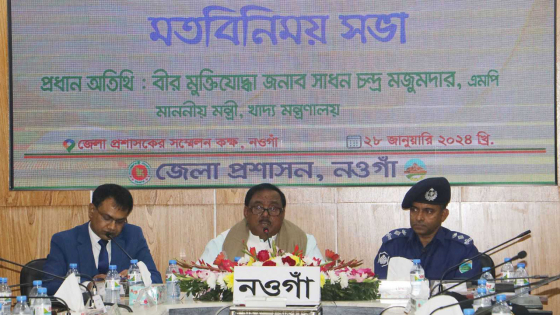 রোববার (২৮ জানুয়ারি) সকালে নওগাঁ জেলা প্রশাসকের সম্মেলনকক্ষে জেলার কর্মকর্তা এবং জনপ্রতিনিধিদের সাথে মতবিনিময়সভায় প্রধান অতিথির বক্তব্যে তিনি এসব কথা বলেন।