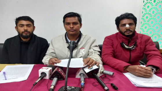 ফেনীর ছাগলনাইয়া উপজেলায় লাঞ্ছিত করে উল্টো তাদের বিরুদ্ধেই মামলা দেওয়ার ঘটনায় নিজ ও পরিবারের জীবনের নিরাপত্তা চেয়ে সংবাদ সম্মেলন করেছেন ভুক্তভোগী তিন ছাত্রলীগ নেতা।
